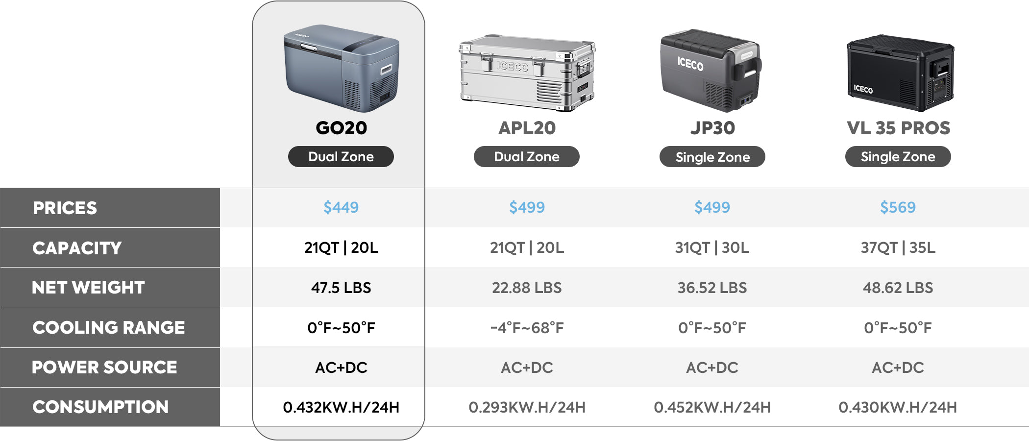 21QT GO20 Dual Zone 12V Portable Freezer | ICECO